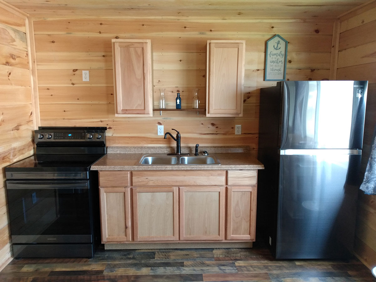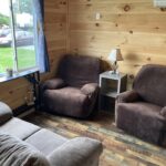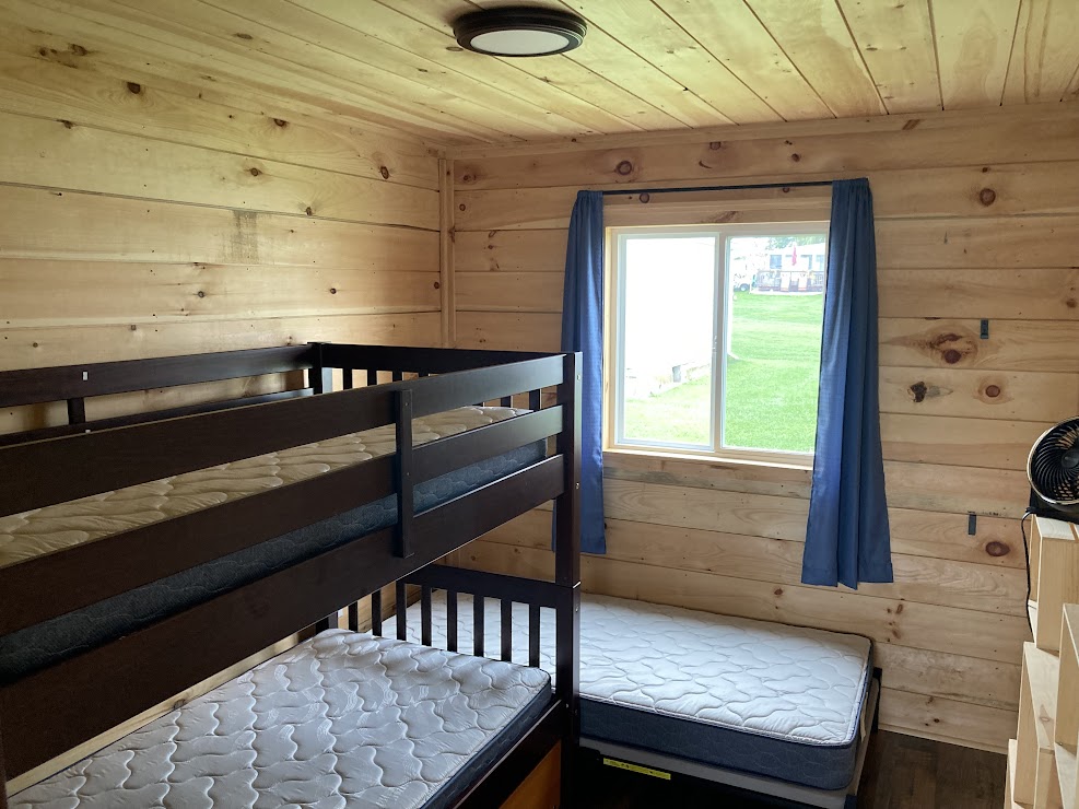 Our housekeeping cottages come equipped heat and Cable TV, a full kitchen including dishes, utensils, glasses and pots and pans, a full bathroom, and a living room. Each bedroom has a double bed and all units have a futon; blankets and pillows are provided. All cottages have a patio with a picnic table and a BBQ grill. You are responsible for the paper and soap products and the linens (Linens are also available for rent at our office).